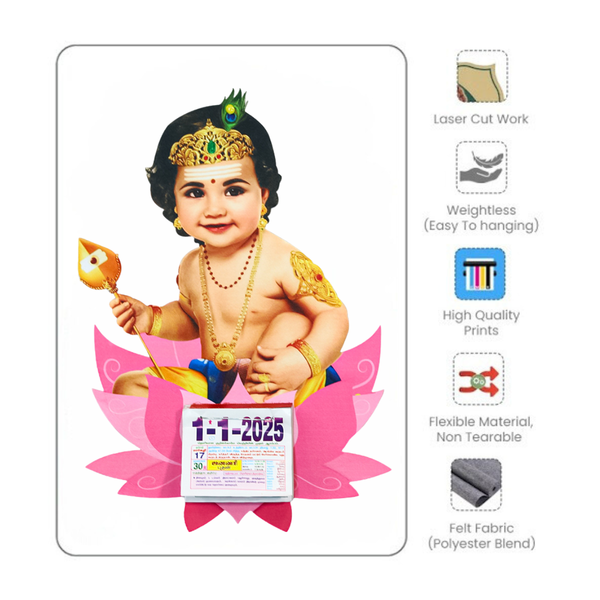 Introducing the 2025 Nauticrew Calendar Featuring Beautiful Murugan Photos, a captivating way to embrace the year while honoring the revered deity Lord Murugan. This calendar is thoughtfully designed to inspire and uplift, showcasing a stunning collection of images that capture the essence and beauty of Lord Murugan throughout each month. Each month presents a new photograph, providing a spiritual touch that brightens your home or office space. The images in this calendar highlight the intricate details of Murugan's features and attire, reflecting the rich cultural and spiritual significance associated with this beloved figure. Whether you are a devoted follower or appreciate the artistry of these representations, this calendar serves as a daily reminder of strength wisdom, and devotion. Measuring a generous size, the calendar is easy to read and ideal for wall hanging. Its high-quality printing ensures that the vibrant colors and intricate designs are beautifully displayed making it an eye-catching addition to any room. The layout includes ample space for you to jot down important dates appointments and reminders ensuring practicality alongside its decorative appeal.This calendar makes a wonderful gift for family friends or colleagues who appreciate spirituality art or cultural significance
