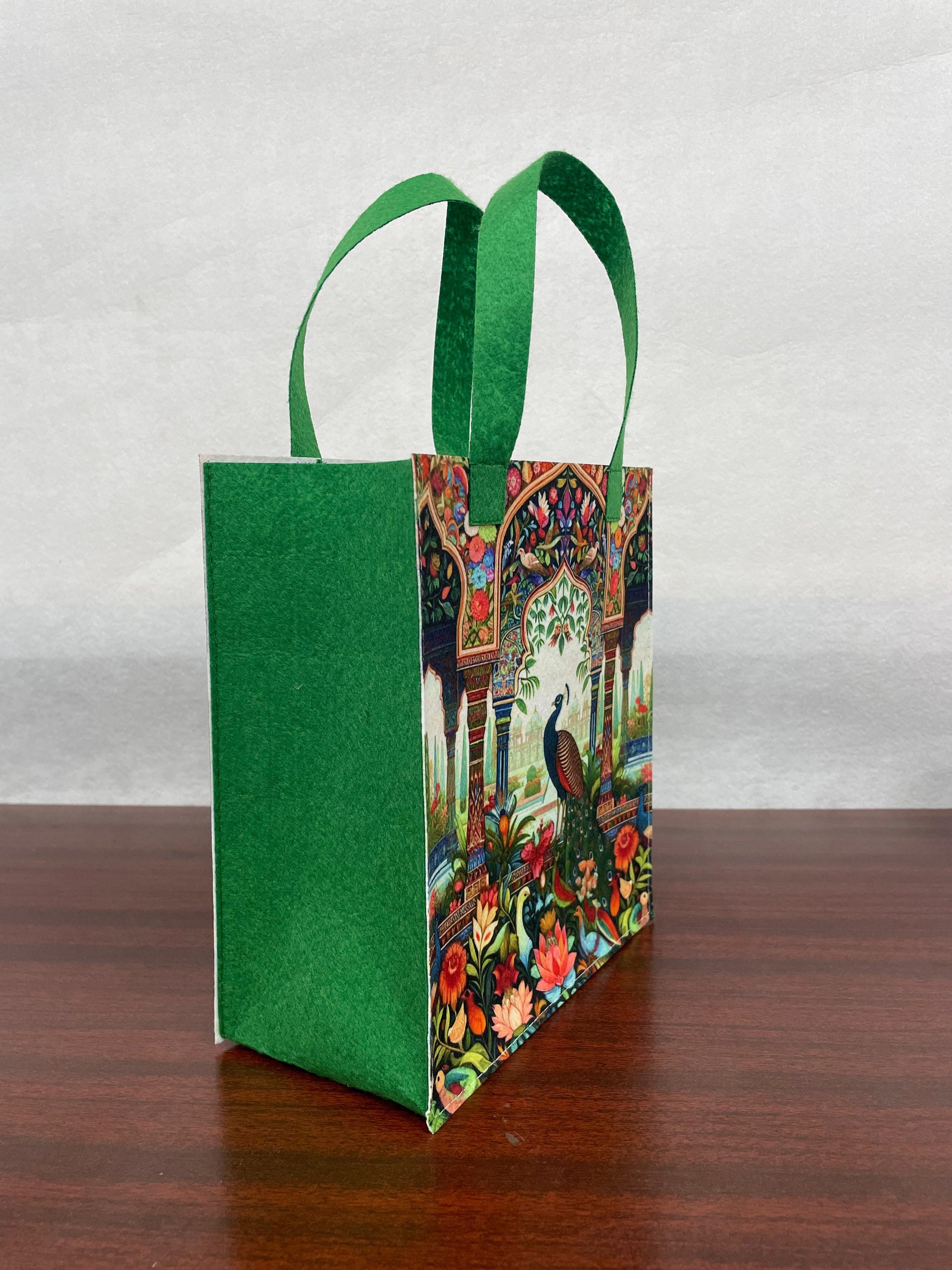 Made from recycled pet bottles, high quality eco felt fabric, very stylish, eye catching small and perfect for gifting cute items, attractive designs High quality and strong gift bag makes gifts look more attractive and beautiful.
